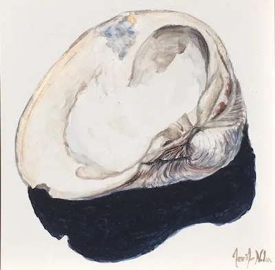 This painting is a part of a series I’m exploring that has to do with relationships, commitment, community and closeness. Oysters demonstrate this perfectly as they are seldom alone!
